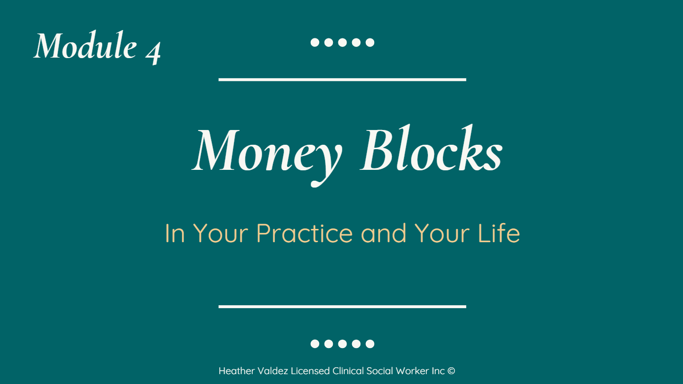 With exercises, worksheets, and therapist examples, learn how money blocks—like undercharging, overgiving, or avoiding finances—keep you from building a sustainable practice.