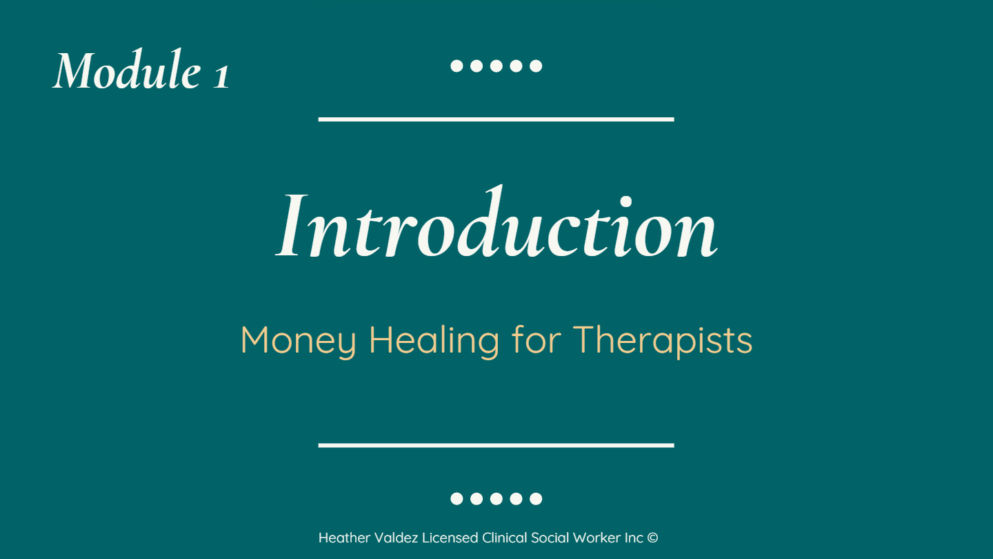 Get oriented to the course, understand why money healing matters for therapists, and begin identifying how financial trauma may be impacting your practice. You’ll also get access to course materials and engage in your first money healing activity.